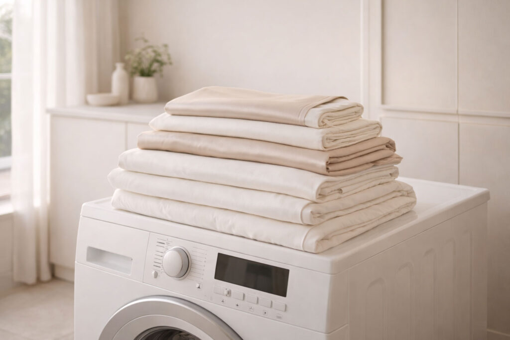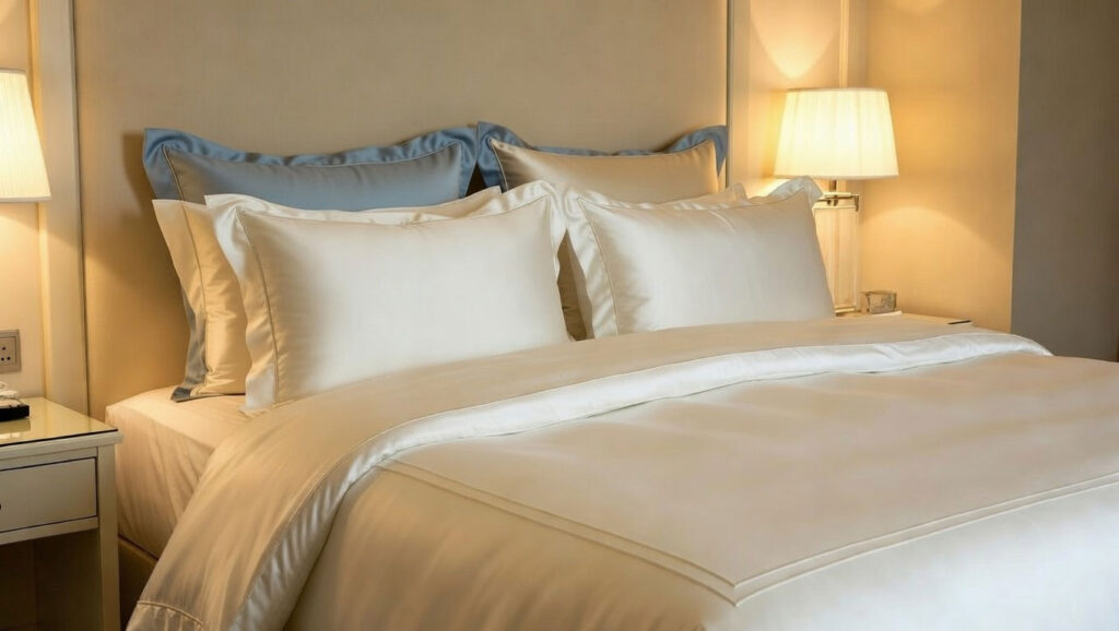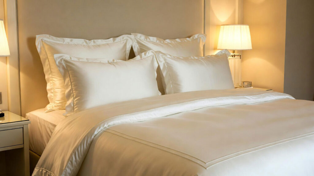 Svilenkasta posteljina u boji slonovače za sofisticiran i bezvremenski luksuz.
